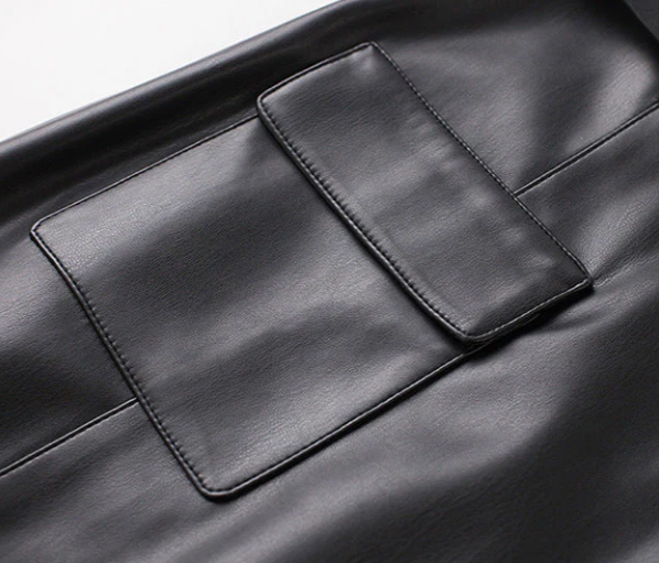 La poche cargo asymétrique ajoute une touche fonctionnelle, tandis que la ceinture à boucle réglable souligne la taille pour une silhouette personnalisée.